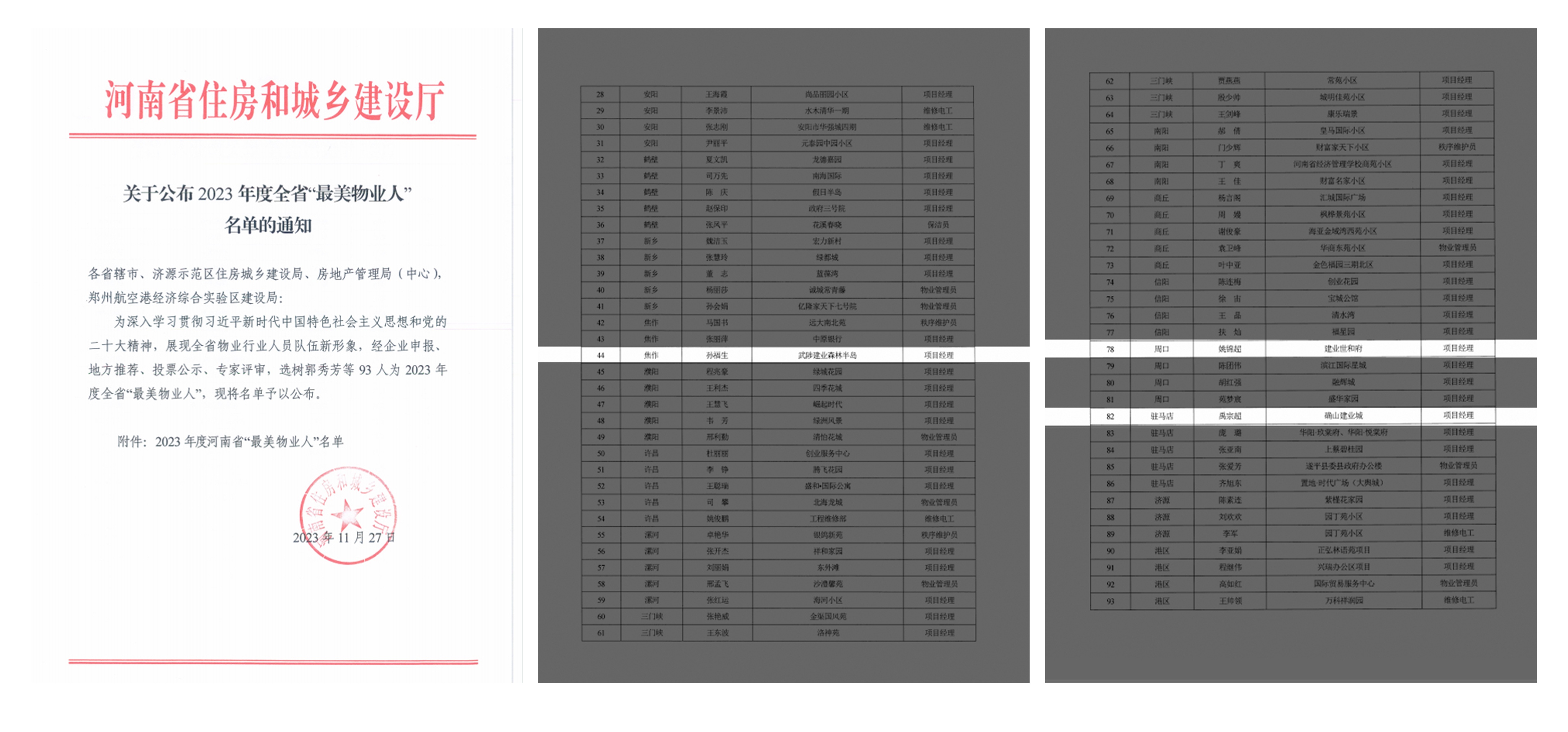 建業(yè)新生活多名員工榮獲“最美物業(yè)人”稱號