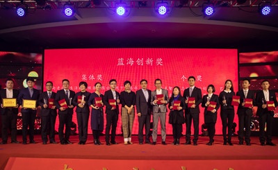 建業(yè)物業(yè)總經(jīng)理許靜、嵩云科技總經(jīng)理蔡斌為獲獎?wù)哳C發(fā)“藍海創(chuàng)新獎”