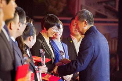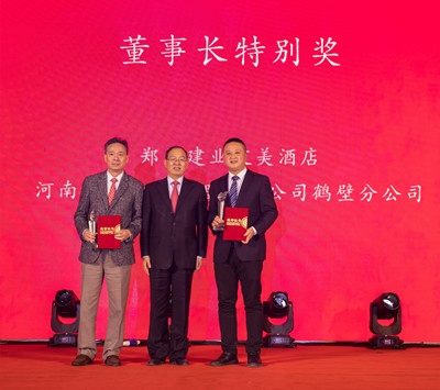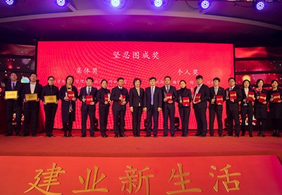 建業(yè)新生活總裁曹仰峰、副總裁周建慧為獲獎?wù)哳C發(fā)“堅忍圖成獎”