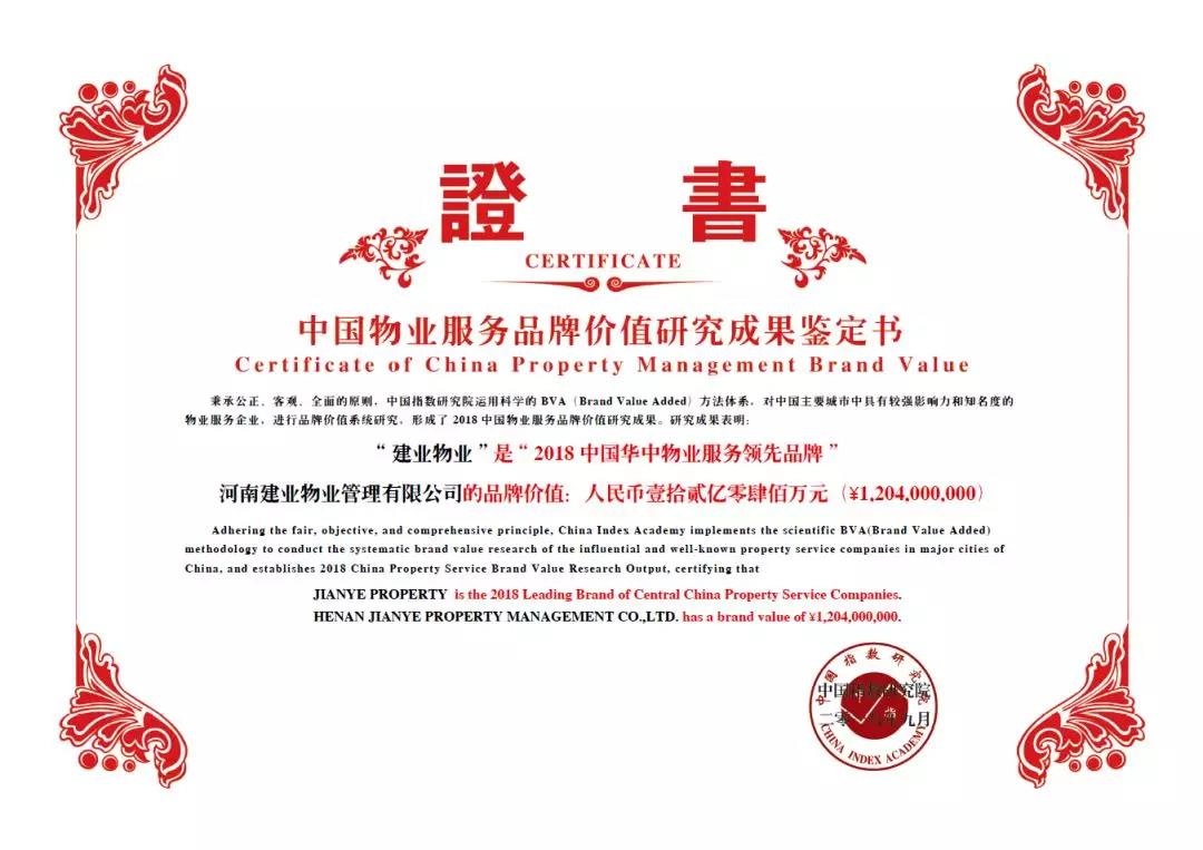 2018年,在中國物業(yè)服務(wù)百強企業(yè)研究中,建業(yè)物業(yè)躍居物業(yè)百強企業(yè)15強。此次榮膺“2018中國華中物業(yè)服務(wù)領(lǐng)先品牌”,再次體現(xiàn)了專業(yè)領(lǐng)域?qū)τ诮I(yè)物業(yè)的認(rèn)可。建業(yè)物業(yè)將繼續(xù)以優(yōu)質(zhì)服務(wù)提升業(yè)主生活幸福感,打造新型生活方式,為河南人民提供更好的人居環(huán)境,持續(xù)引領(lǐng)河南人居服務(wù)新高度。
