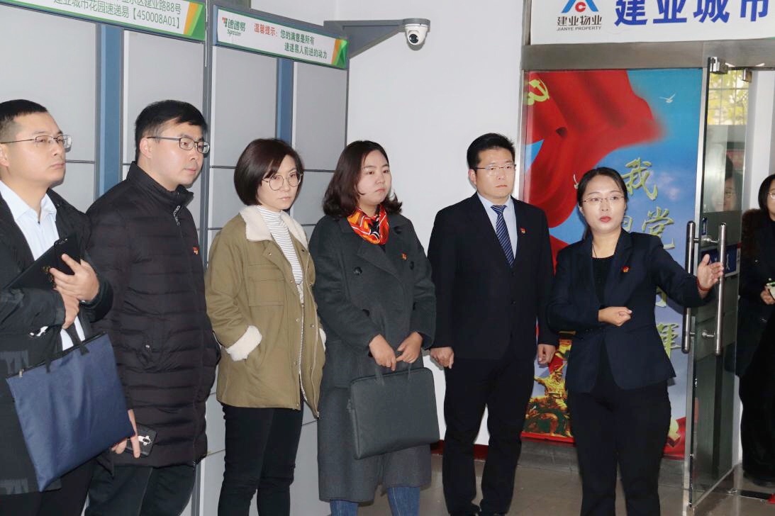 鄭州市委組織部一行蒞臨建業(yè)城市花園小區(qū)指導(dǎo)建業(yè)物業(yè)黨建工作