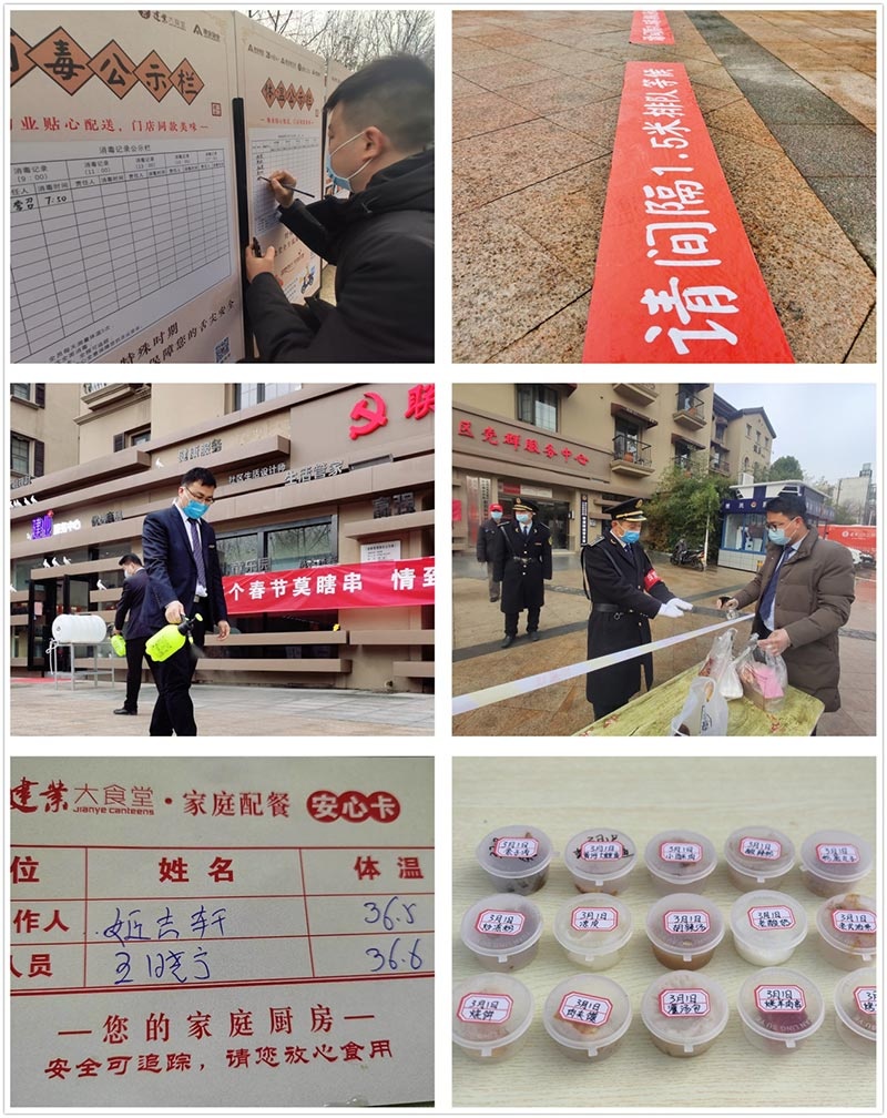 從菜品設(shè)計(jì)到衛(wèi)生保障、再到安全配送,每一個(gè)環(huán)節(jié)都經(jīng)過深思熟慮、嚴(yán)格把關(guān),打造制作流程嚴(yán)格管控,制作及配送人員健康公示、車輛及場地每天5次全面消毒、取餐1.5米間隔線、配送人員一單一消毒、隨餐放置安心卡、每日每餐食品留樣監(jiān)測的“五大安全保障”,全方位守護(hù)業(yè)主的舌尖幸福。