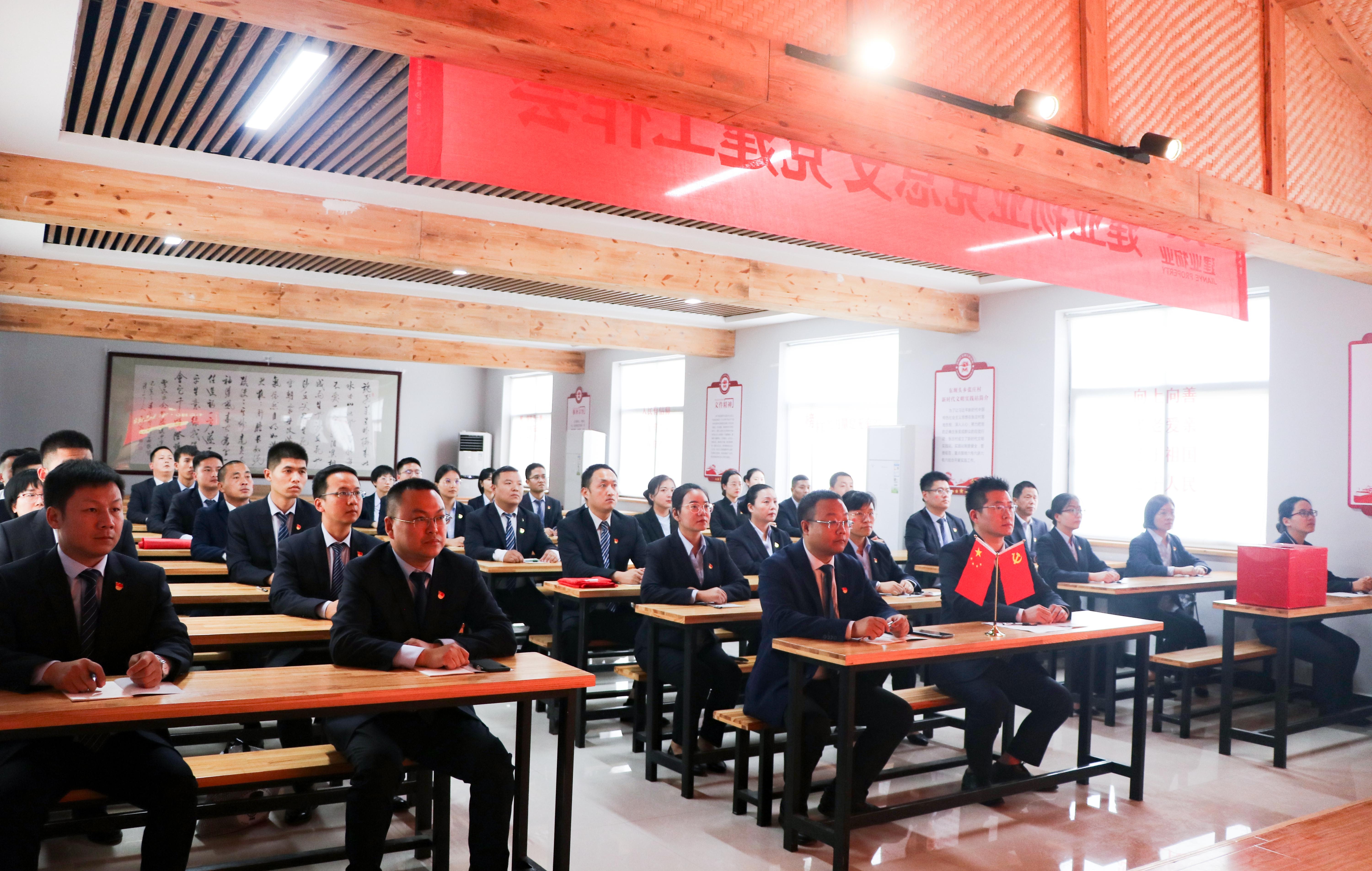 在莊嚴(yán)的國(guó)歌聲中,建業(yè)物業(yè)黨總支黨員代表大會(huì)在張莊村新的會(huì)議室開(kāi)幕。