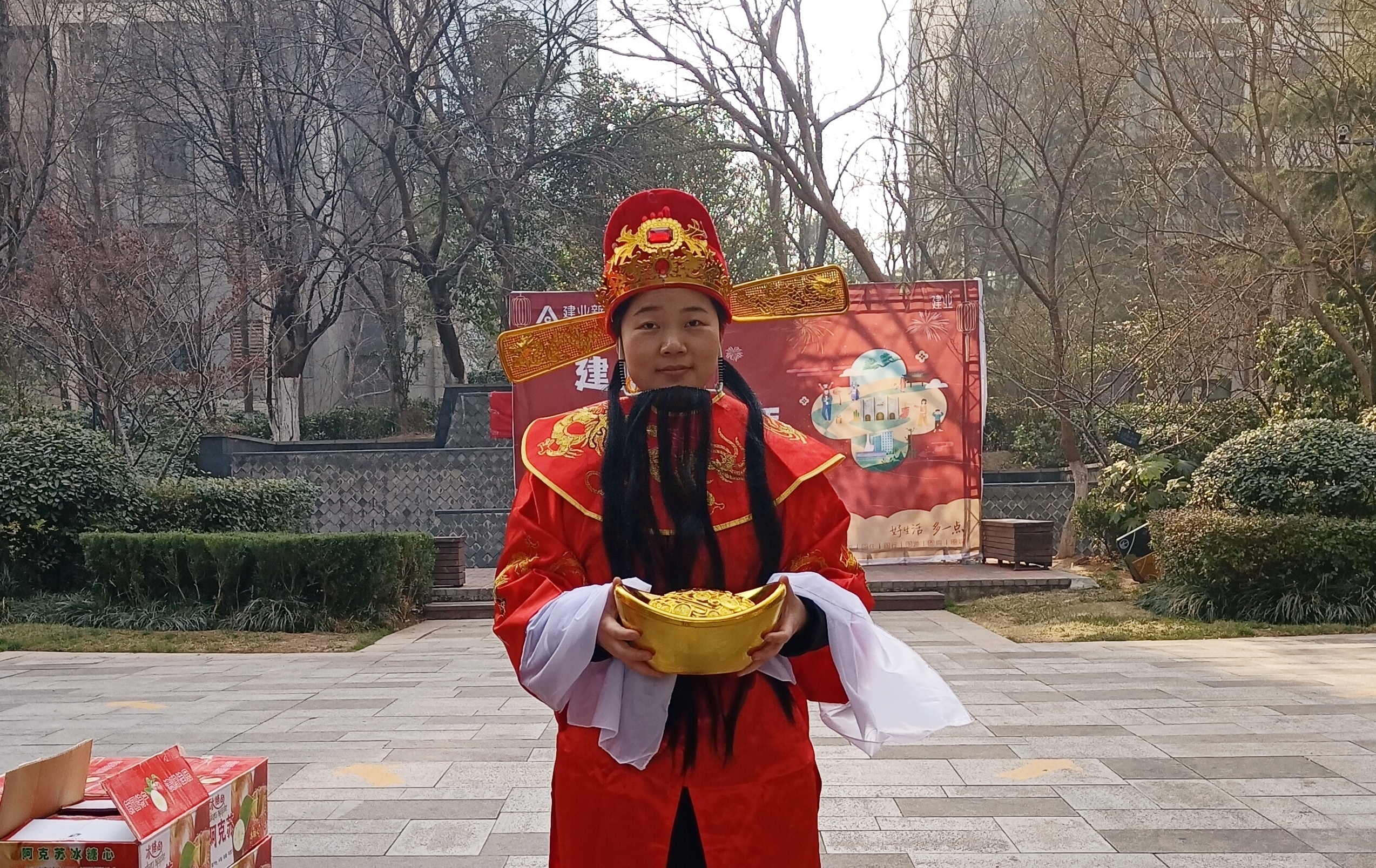 洛陽(yáng)·建業(yè)世紀(jì)華陽(yáng)C區(qū)管家李聰雅:今年大年三十和初一,我留守在工作崗位上幫業(yè)主貼春聯(lián)、發(fā)拜年信息、組織新年活動(dòng)、和同事一起扮財(cái)神給業(yè)主拜年、派發(fā)糖果和小禮物……有趣的是,很多業(yè)主看到我們物業(yè)人在扮財(cái)神,紛紛要與我們合影,想要一起沾點(diǎn)喜氣,看到業(yè)主開(kāi)心的模樣,我也感到很開(kāi)心。雖然最重要的日子不能陪伴家人,但堅(jiān)守崗位依然可以喜氣洋洋過(guò)大年!