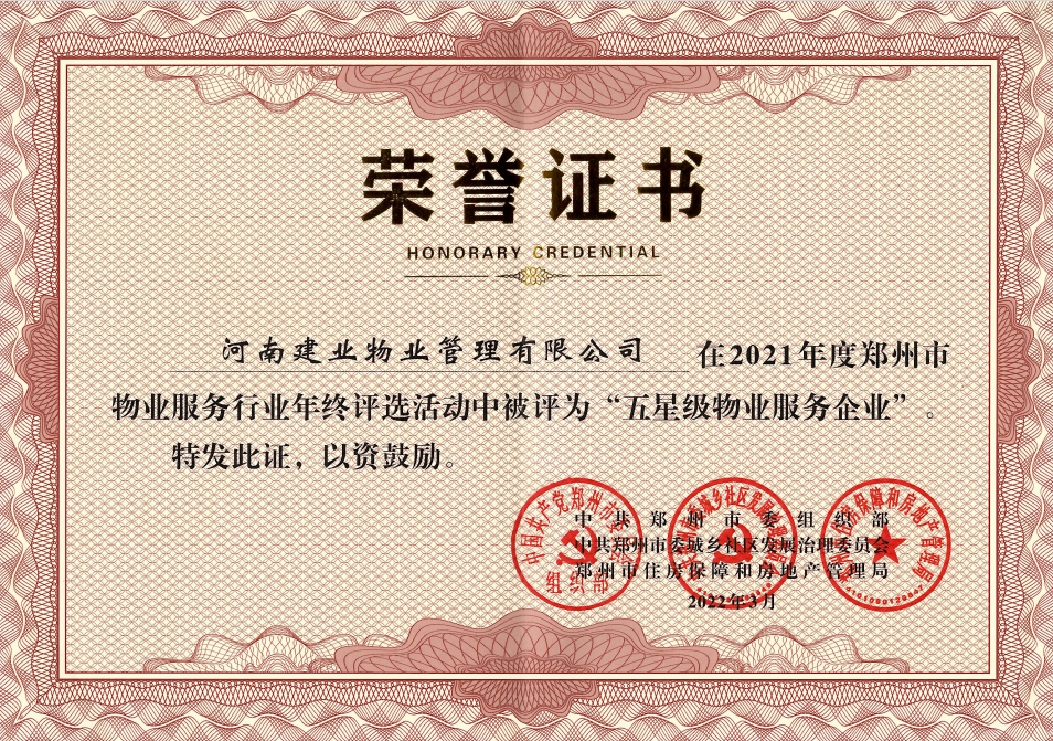 日前,由鄭州市委組織部、鄭州市委城鄉(xiāng)社區(qū)發(fā)展治理委員會(huì)、鄭州市住房保障和房地產(chǎn)管理局聯(lián)合舉辦的2021年度鄭州市物業(yè)服務(wù)行業(yè)年終評(píng)選活動(dòng)公布結(jié)果,河南建業(yè)物業(yè)管理有限公司順利斬獲“五星級(jí)物業(yè)服務(wù)企業(yè)”榮譽(yù)稱號(hào)。
