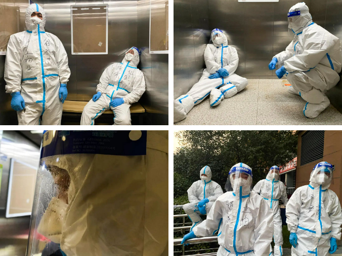 在封控的這段時(shí)間里,她每天都要走超過(guò)40000步。每天早上5點(diǎn)多,劉嬌嬌就要起床準(zhǔn)備,開始協(xié)同醫(yī)護(hù)人員進(jìn)行入戶核酸檢測(cè),與此同時(shí),細(xì)心的她還主動(dòng)詢問每戶業(yè)主的服務(wù)需求。樓道消殺、物資配送……忙完這些,稍作休息,她還要再逐戶清收生活垃圾,等拖著一身的疲憊躺在辦公室的地鋪上時(shí),往往已是午夜。