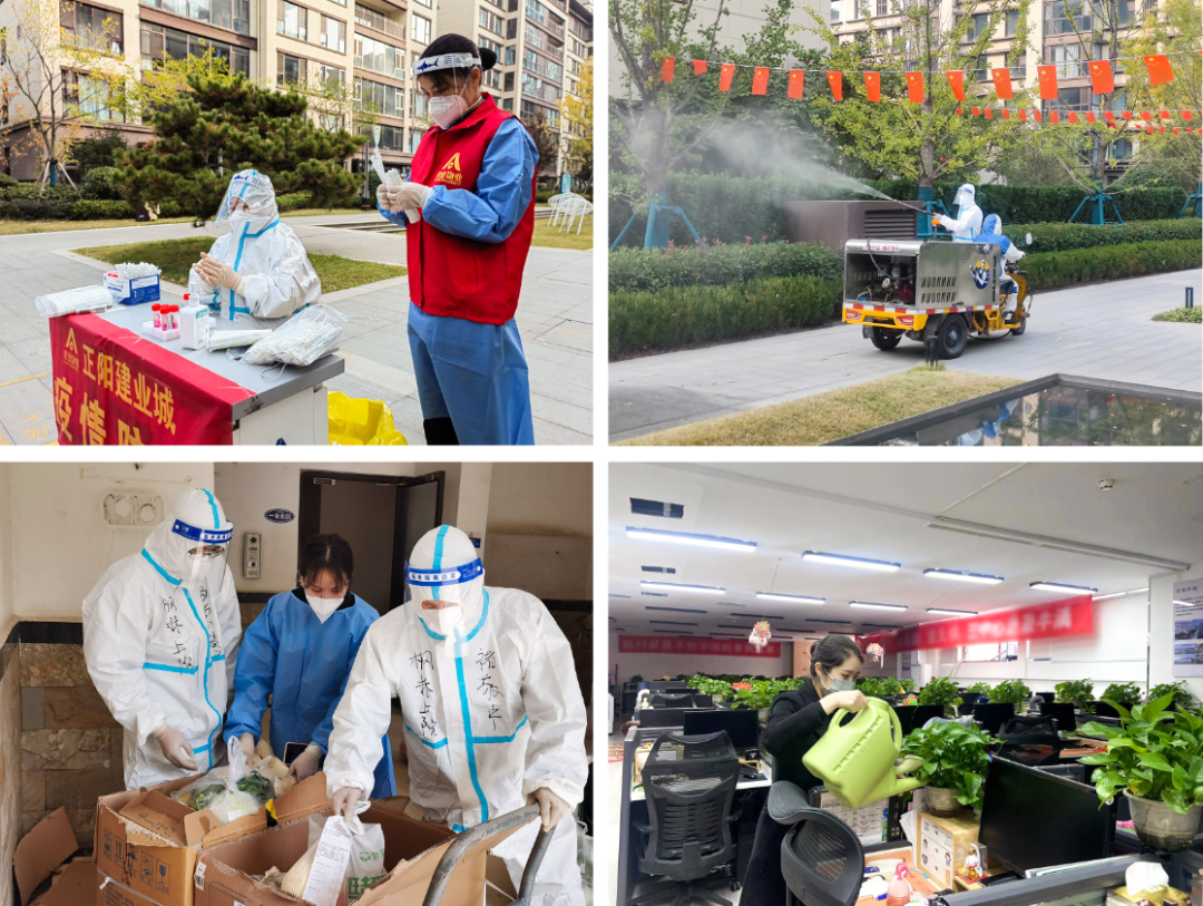 疫情期間,建業(yè)物業(yè)在管的800多個(gè)項(xiàng)目,成千上萬(wàn)名物業(yè)人克服萬(wàn)難返回崗位,日夜堅(jiān)守園區(qū),承擔(dān)起防疫和保障業(yè)主生活的重任。為保障各園區(qū)消毒工作做到位,建業(yè)物業(yè)人每天背負(fù)著30多斤的消毒藥桶對(duì)入戶單元、電梯轎廂、地下車庫(kù)等各個(gè)角落全面消殺,日行超過(guò)20000步,不漏過(guò)一處死角;為了保障小區(qū)全體業(yè)主的正常生活需求,建業(yè)物業(yè)人代購(gòu)代送各類生活物資,每天工作時(shí)長(zhǎng)達(dá)14個(gè)小時(shí)甚至更多;不僅如此,硬核防疫期間,建業(yè)物業(yè)仍持續(xù)提供暖心服務(wù),代小業(yè)主們?nèi)W(xué)校領(lǐng)取學(xué)習(xí)資料、為封控在外的業(yè)主照顧綠植或?qū)櫸铩槁圆』颊哔?gòu)買日常用藥、幫業(yè)主代充燃?xì)饪?.....細(xì)致、周到的服務(wù)讓每一位有需求的業(yè)主都能感受到貼心、暖心。