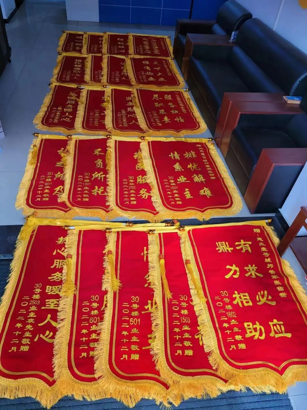 12月8日,剛剛解封不久的新鄉(xiāng)·建業(yè)壹號(hào)城邦物業(yè)服務(wù)中心內(nèi),業(yè)主代表們將21面鮮紅的錦旗送給了貼心管家張?zhí)鹛穑瑢?duì)她在疫情封控期間的無私奉獻(xiàn)及日常服務(wù)中的盡職盡責(zé)表達(dá)感謝。